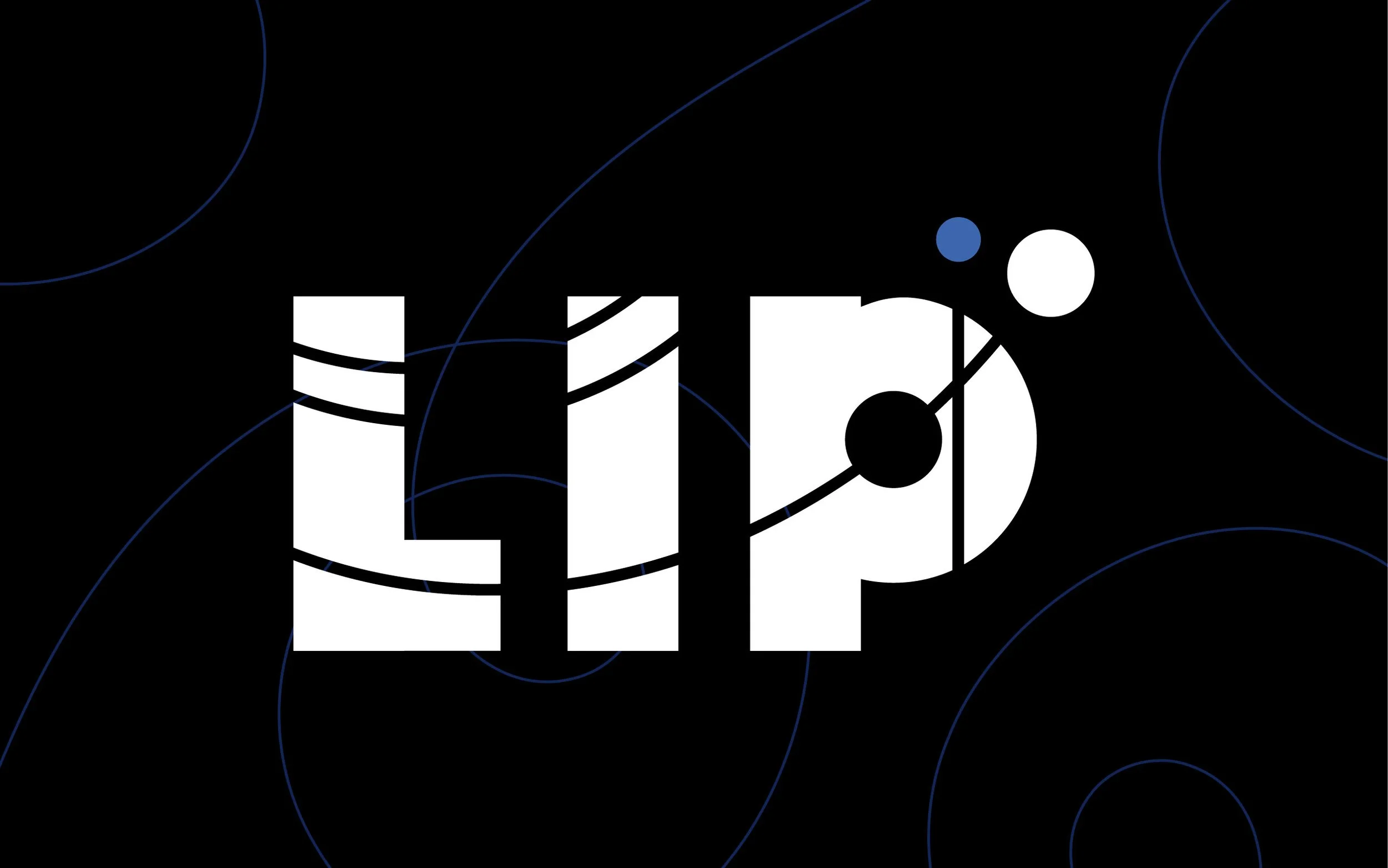 A nova proposta transforma o acrónimo numa lettermark, onde as trajetórias passam a formar as próprias letras, simbolizando o LIP como espaço de interação entre Partículas, Tecnologia e Pessoas.